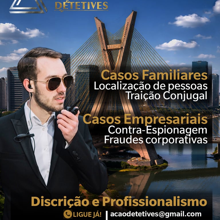 Com tecnologia de ponta e uma equipe de detetives altamente qualificados, a Ação Detetives trabalha para entregar soluções eficazes às necessidades de seus clientes. Garantimos a coleta de provas reais — imagens, áudios e documentos — que confirmem ou descartem suas suspeitas com total segurança e confidencialidade.